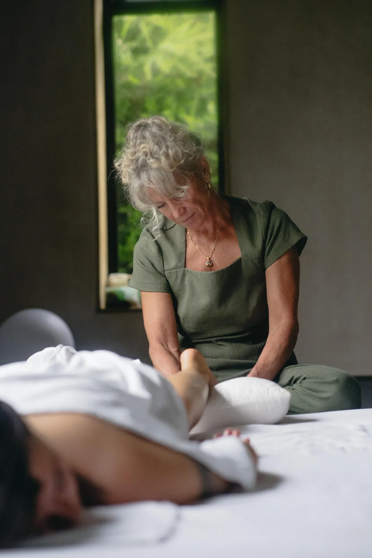 Evangeline's journey into holistic balance and wellness began as a reflexologist and evolved into mastering the arts of Tulamassage, yoga, and breathwork. Her unique approach is deeply rooted in personal experience and years of study across the globe - from India to Bali, and Lanzarote to Cornwall. Evangeline’s work is a reflection of her life’s journey, filled with resilience, compassion, and an unwavering belief in the power of healing.
